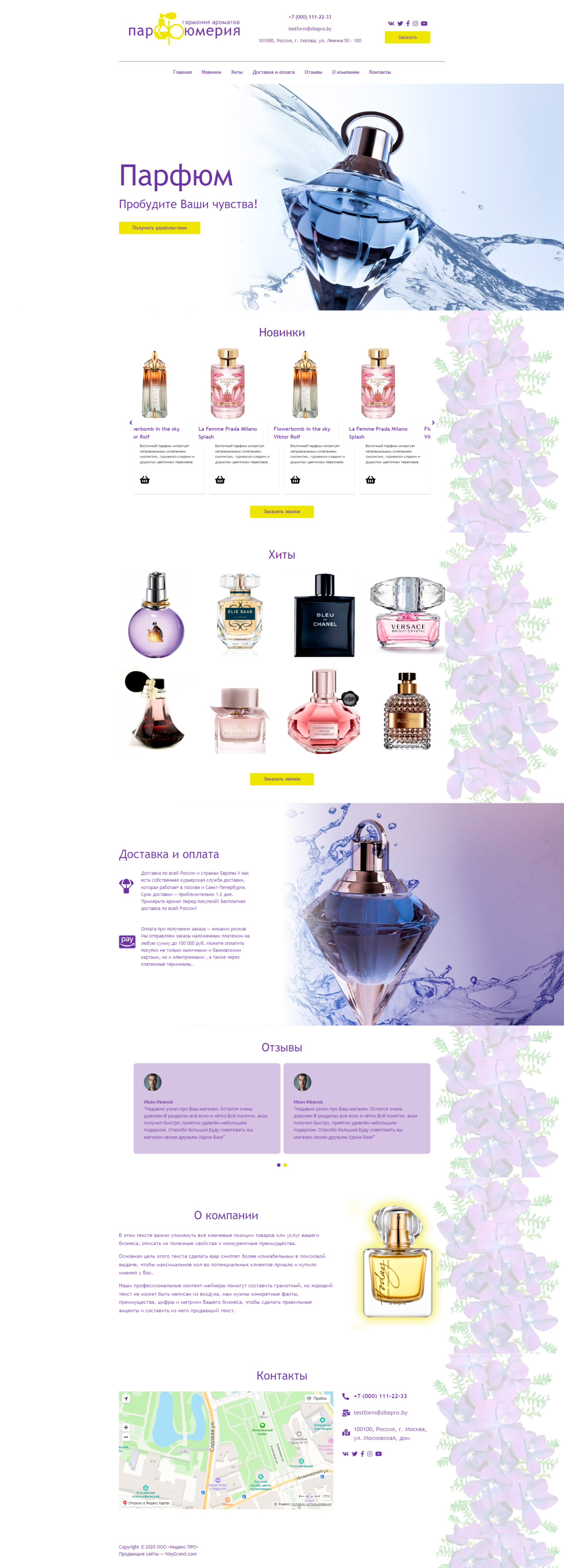 Закажите готовый продающий сайт лендинг #1030202 в Кисловодске за 1-3 дня «под ключ»: свёрстан, отрисован и готов к рекламе. Тематика шаблона «Парфюмерия».