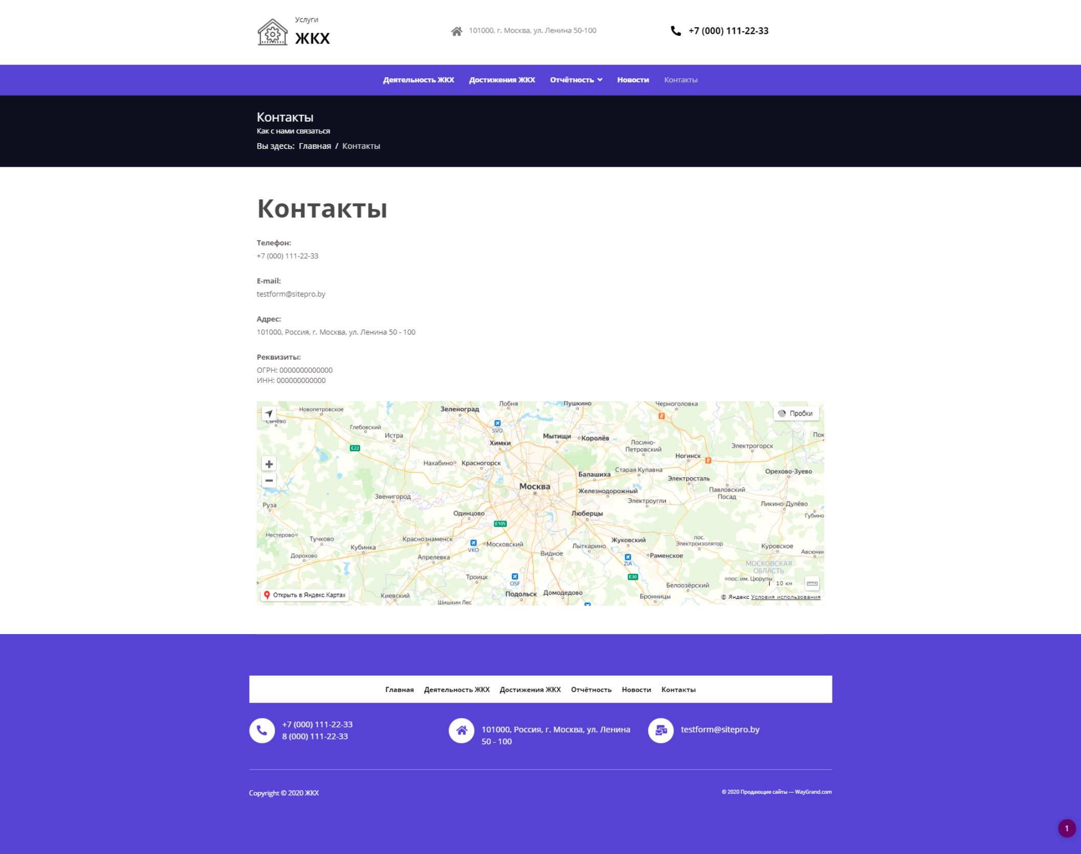 - Страница "Контакты"