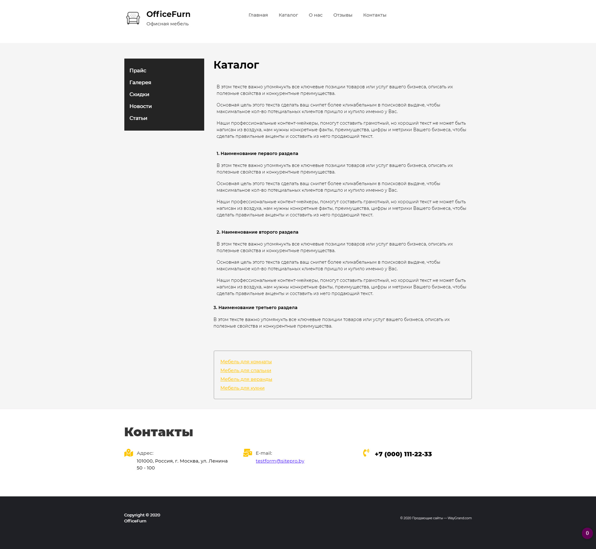 Закажите готовый продающий сайт визитка #0921301 в Кисловодске за 5-7 дня «под ключ»: свёрстан, отрисован и готов к рекламе. Тематика шаблона «Офисная мебель».