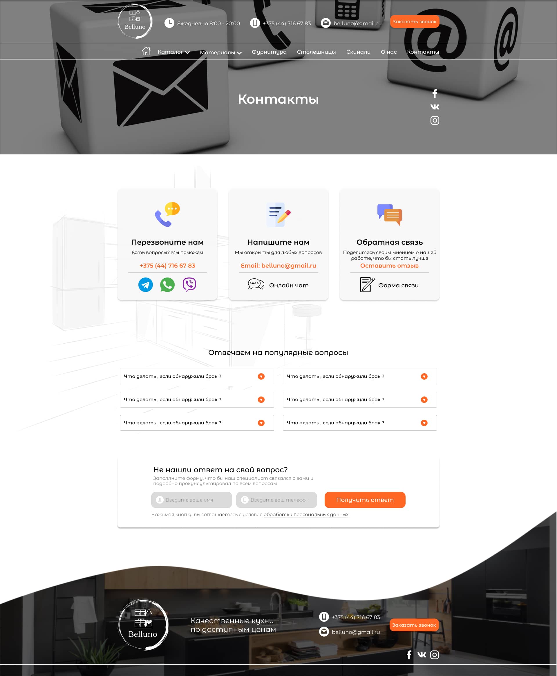 Закажите готовый продающий сайт визитка #282 в Кисловодске за 5-7 дня «под ключ»: свёрстан, отрисован и готов к рекламе. Тематика шаблона «Кухни».
