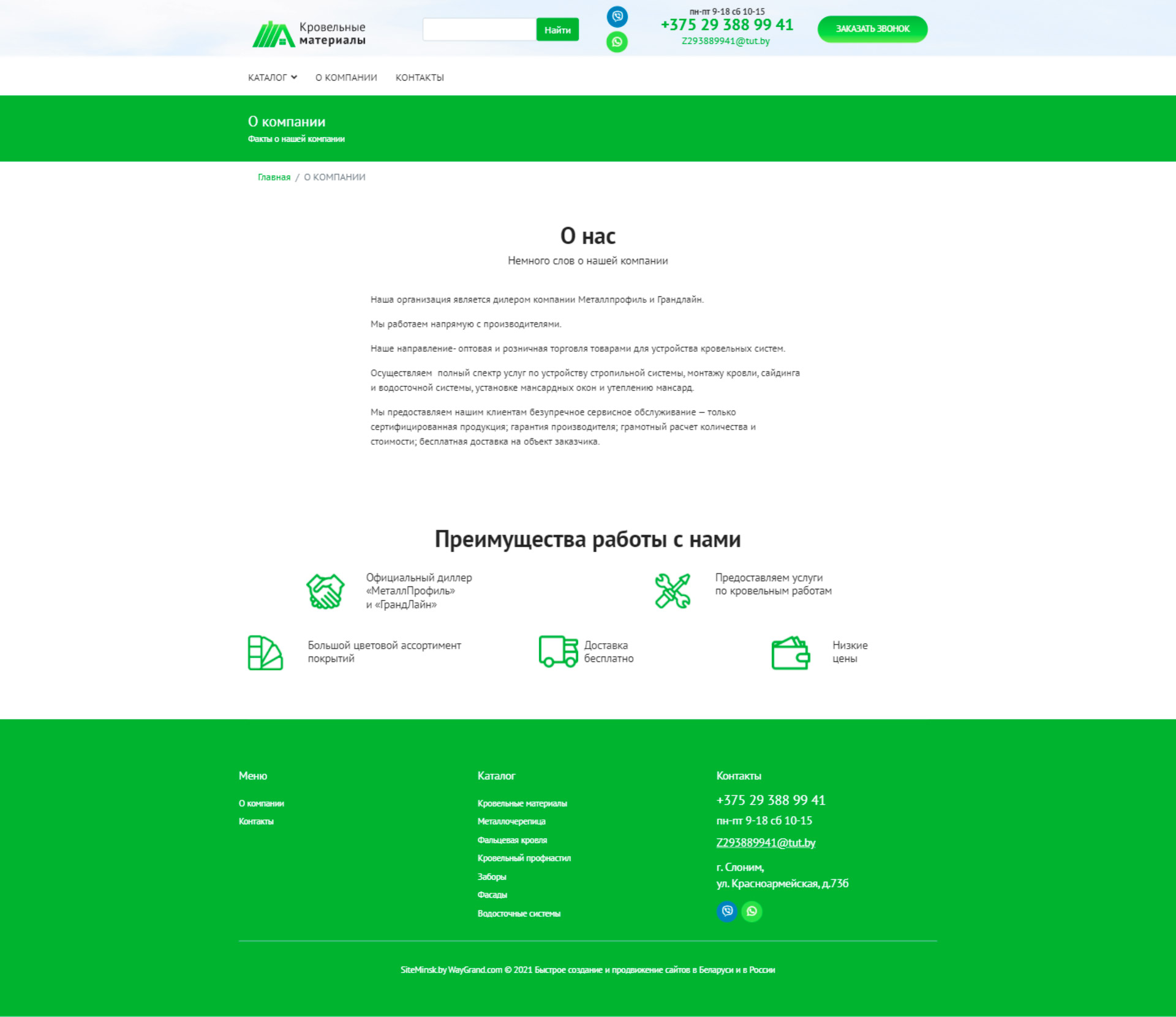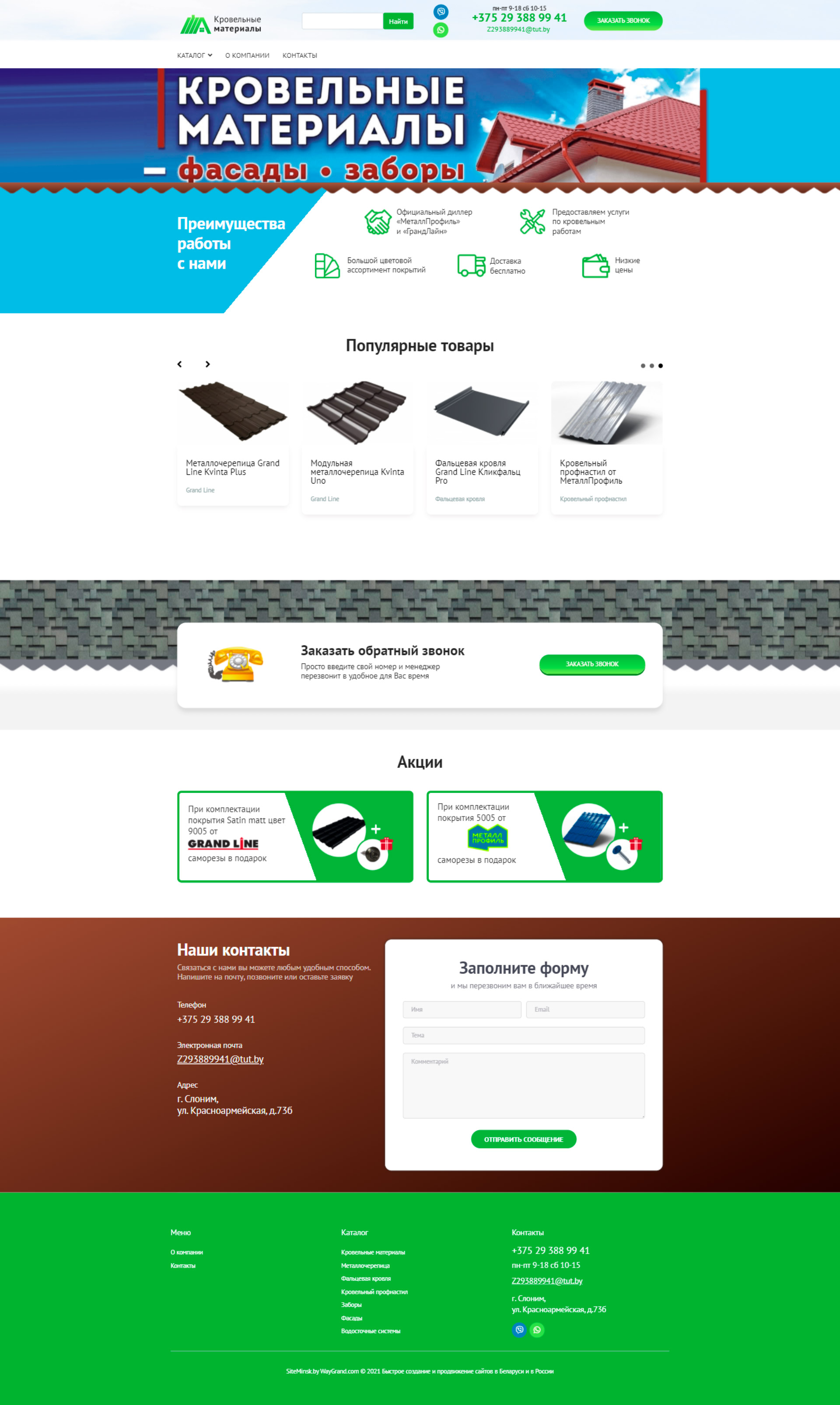 Закажите готовый продающий сайт визитка #324 в Кисловодске «под ключ» на waygrand по выгодной цене: свёрстан, отрисован и готов к рекламе. Тематика шаблона «Кровельные материалы».
