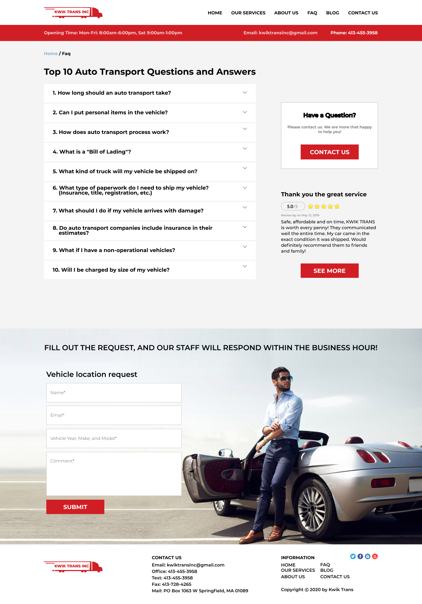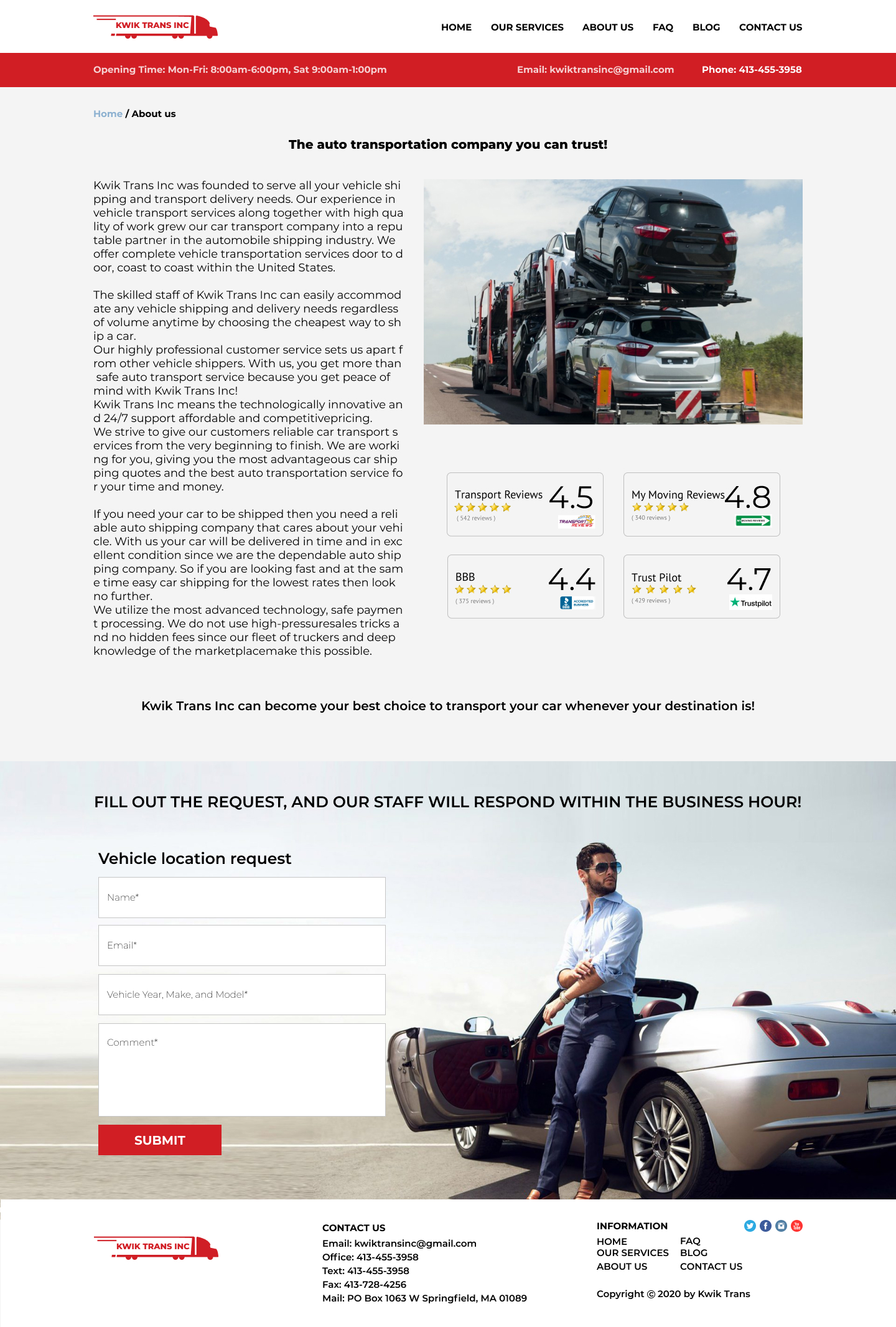 Закажите готовый продающий сайт визитка #223 в Кисловодске за 5-7 дня «под ключ»: свёрстан, отрисован и готов к рекламе. Тематика шаблона «Safe & Reliable National Auto Transport».